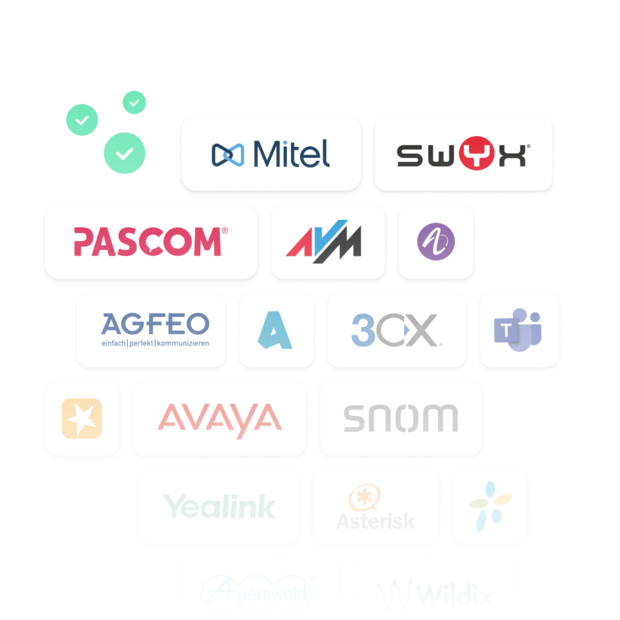 Unsere SIP-Trunks lassen sich nahtlos mit einer Vielzahl an Telefonanlagen, Softphones, SBCs und Gateways verbinden.