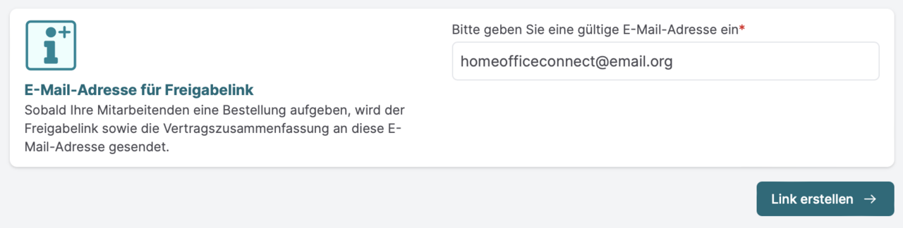 Sie erhalten außerdem eine E-Mail mit der Bestellbestätigung. Sie können nun den generierten Link kopieren und an Ihre Mitarbeitenden weitergeben.