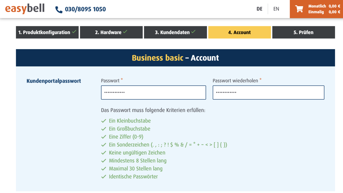 Schritt 4: Erstellen Sie Ihren easybell-Account.