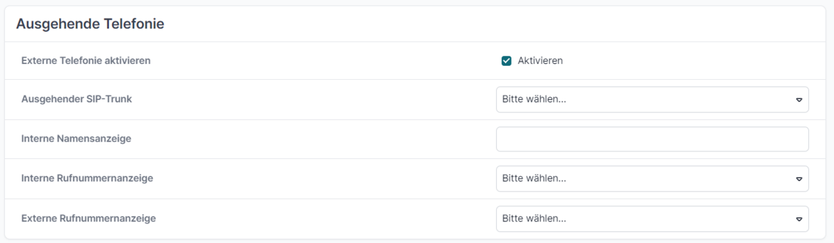 Externe Verbindungen sind alle Anrufe außerhalb Ihrer Instanz der Cloud Telefonanlage. Diese Einstellung ist also besonders wichtig beim Kundenkontakt: