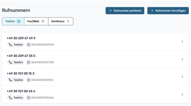 Klicken Sie auf die betreffende Rufnummer, um deren Details aufzurufen.