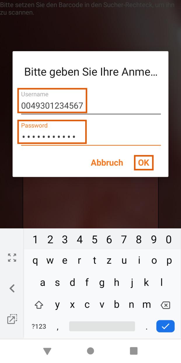 Drücken Sie bitte auf das Symbol für den QR-Scan unten mittig.