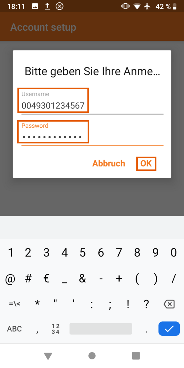 Bitte geben Sie Ihren Username und Ihr SIP-Passwort ein.