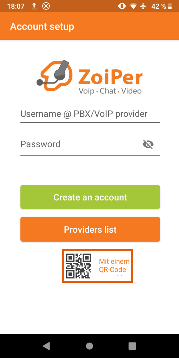 Um den QR-Code scannen zu können, müssen Sie Zoiper ggf. die Rechte geben, um Bilder und Videos aufzunehmen.