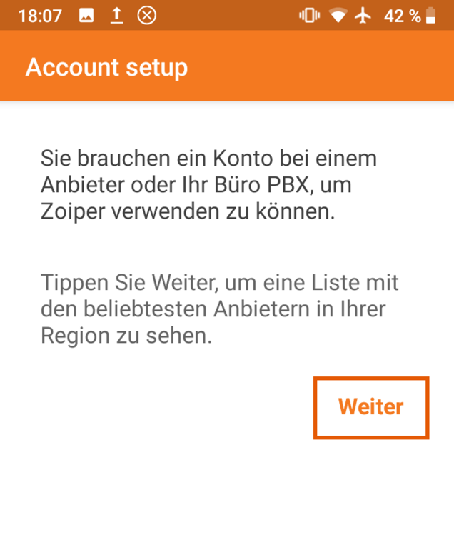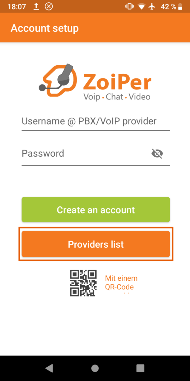 Drücken Sie bitte auf „Providers list“ unten mittig. Die Hinweise im nächsten Bildschirm können Sie mit „Weiter“ bestätigen.