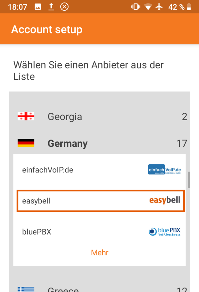 Anschließend können Sie unter „Germany“ easybell als Provider anklicken.