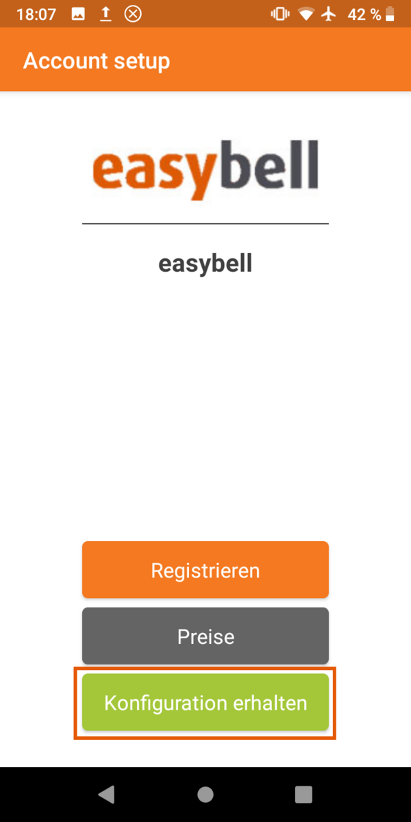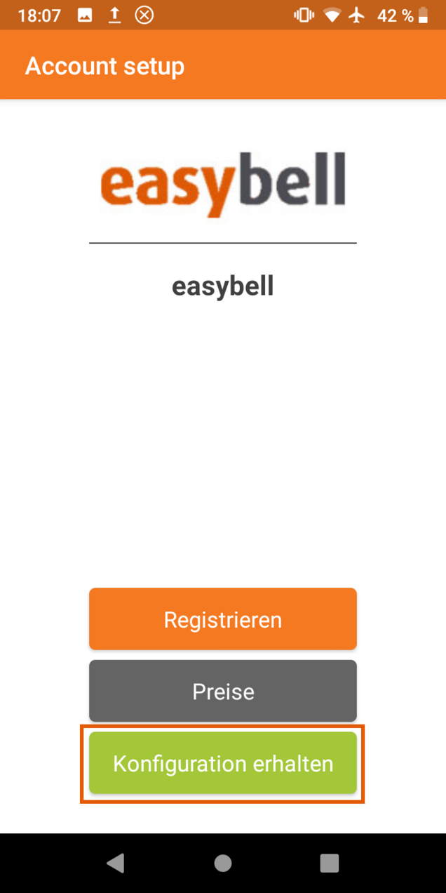 Auf der Übersichtsseite zu easybell können Sie sich neu registrieren oder Preise einsehen. Da wir davon ausgehen, dass Sie bereits ein Konto besitzen, klicken Sie bitte auf „Konfiguration erhalten“.
