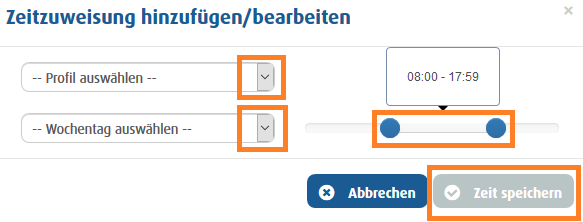 Sie können auch über den orangenen Button „Neue Zeitzuweisung“ Profile und Zeiten zusammenzuführen.