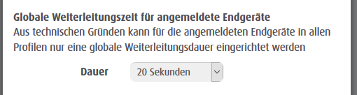 Außerdem können Sie hier festlegen, nach welcher Zeit der Anruf vom ersten Endgerät weitergeleitet werden soll.