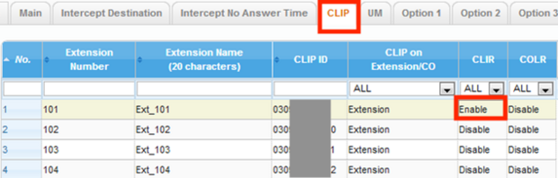 Für Rufnummernunterdrückung ist im Reiter "CLIP" aus dem vorherigen Abschnitt die CLIR-Funktion zu aktivieren.