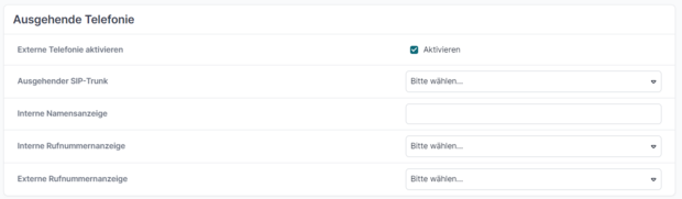 Im Bereich „Ausgehende Telefonie“ finden Sie das Feld „Rufnummernanzeige“, in dem Sie zwischen den drei Auswahlmöglichkeiten wählen können: