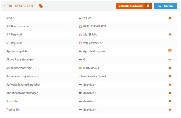 Für jede Rufnummer können Sie zahlreiche Anpassungen vornehmen.