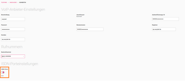 ISDN-Porteinstellungen:
