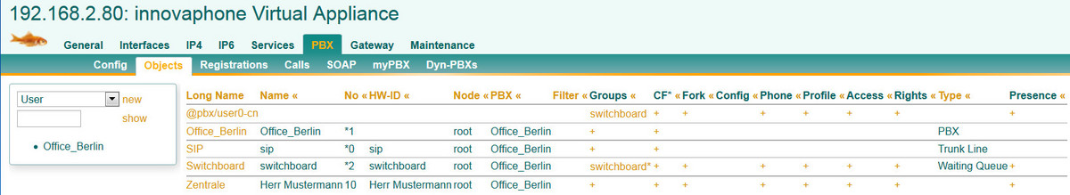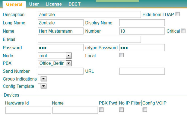 Achten Sie darauf, dass die Auswahl unter „Filter“ leer bleibt (Reiter „User“). Ansonsten ist die Nebenstelle nicht erreichbar.