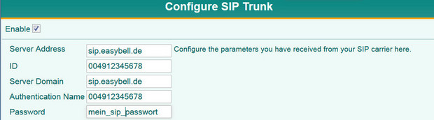 - Tragen Sie Ihre easybell Trunkrufnummer (easybell Rufnummer + Durchwahl) ein.
