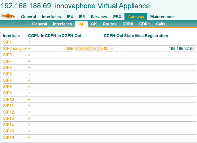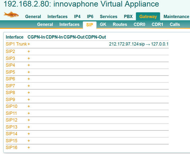- Klicken Sie auf das „+“ hinter SIP1 Trunk.