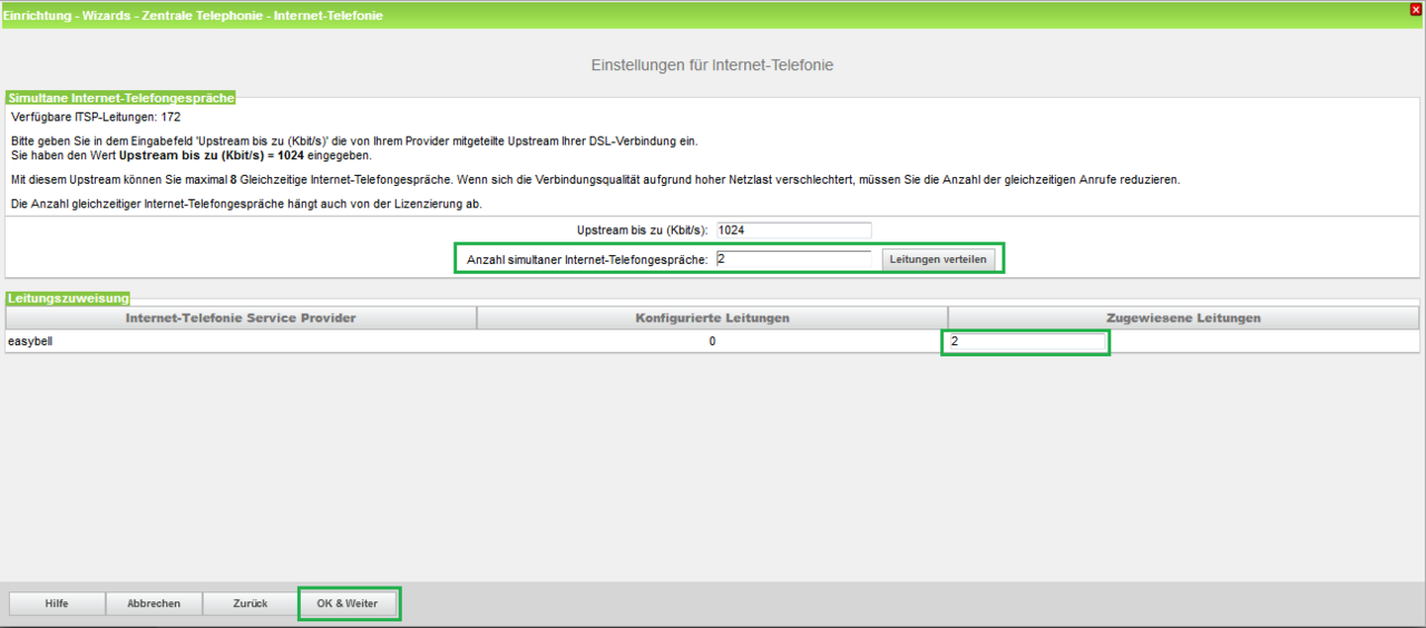 Dieser Wert muss zu Anzahl der Sprachkanäle in Ihrem easybell-Tarif passen. Also bspw. bei Business 2 zwei, bei Business 10 zehn, usw.