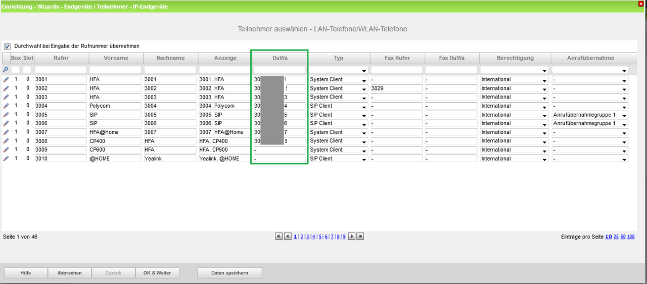 Auf dem easybell SIP Trunk wird die Rufnummer standardmäßig mit der internationalen Vorwahl im E.164-Format verwendet. In der hier vorgestellten Konfiguration (Standort enthält die internationale Vorwahl =49) muss daher die DuWa/CLIP Nummer im “Langformat” konfiguriert werden (komplette nationale Rufnummer ohne Prefix z.B. 30921…..).