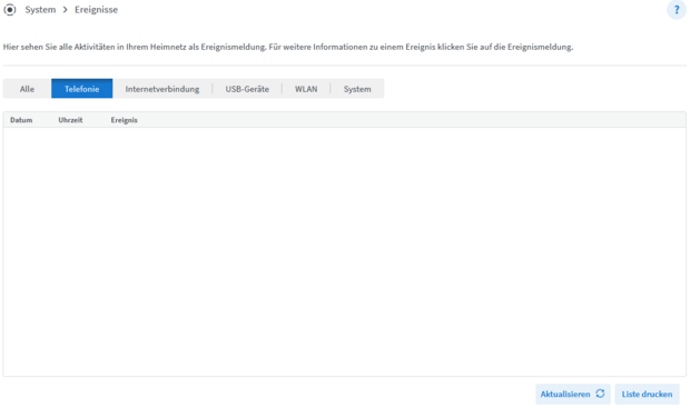 In der FRITZ!Box klicken Sie bitte auf System → Ereignisse und wechseln dann zur Registerkarte „Telefonie".