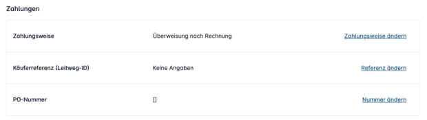 Wählen Sie im Seitenmenü bitte „Abrechnung & Bezahlung”. Dort können Sie im Abschnitt „Zahlungen“ Ihre Zahlungsweise ändern.