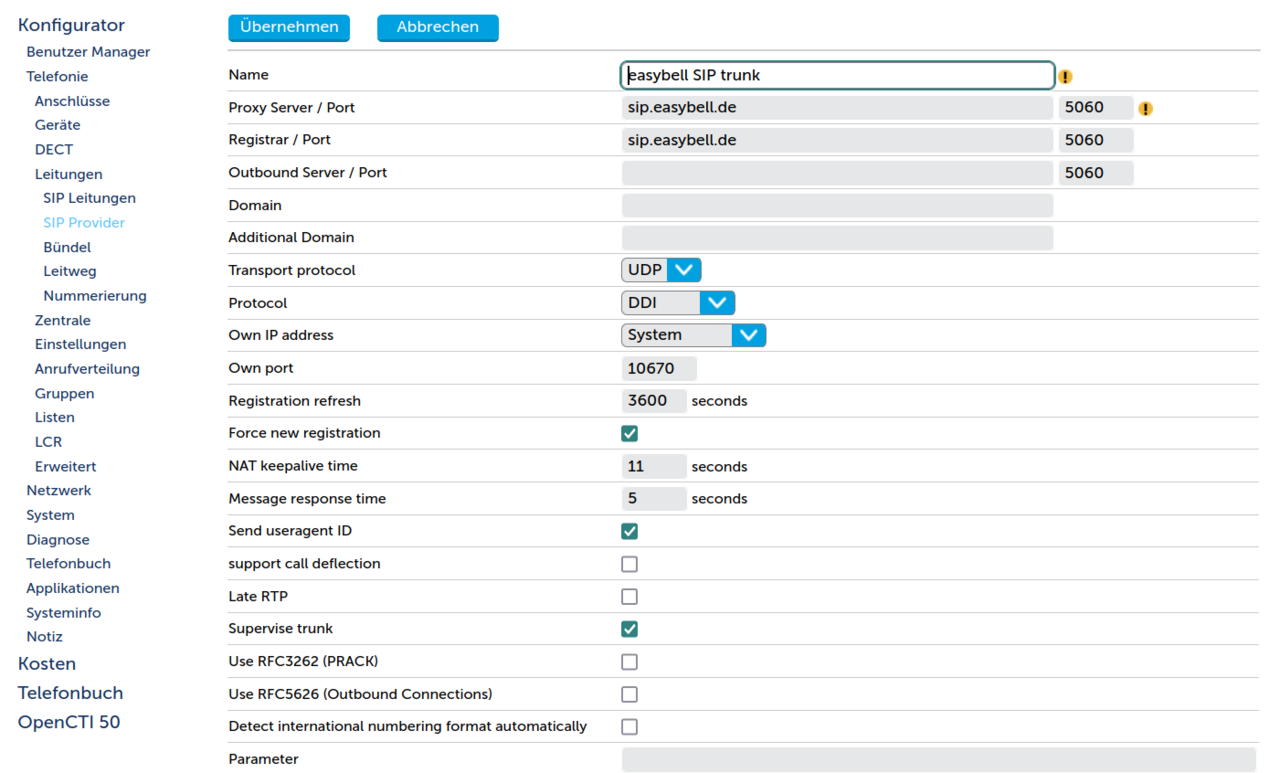 Registrar / Port: sip.easybell.de / 5060