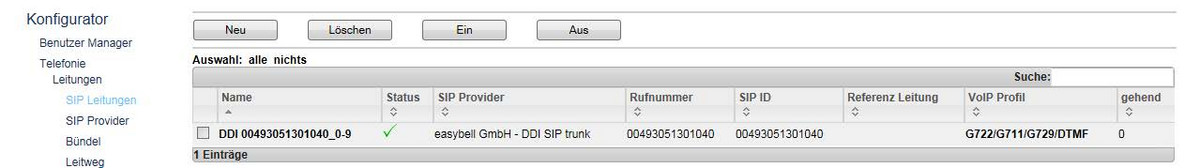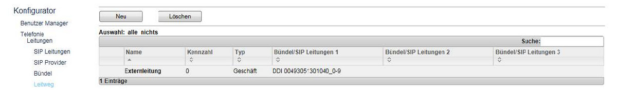 Klicken Sie bitte beim Menüpunkt „SIP Leitungen“ auf „Neu“.