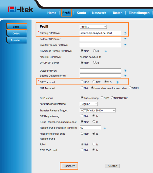 Primary SIP Server: voip.easybell.de:5061