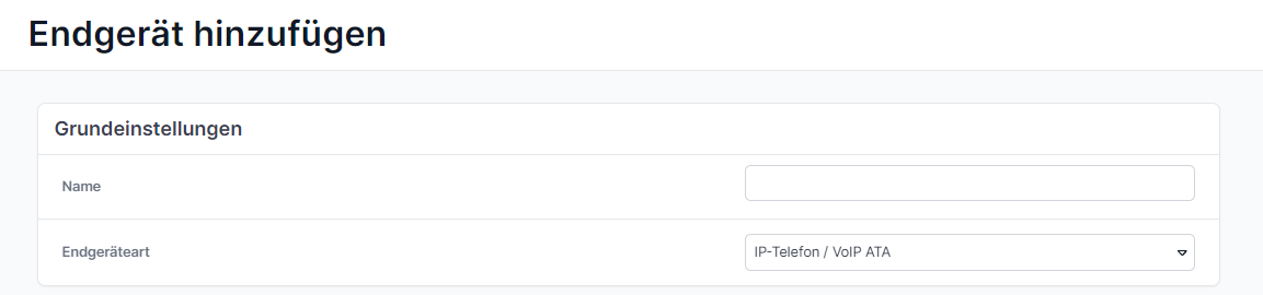 Diese generieren Sie, indem Sie in der Cloud Telefonanlage im Bereich „Endgeräte“ weitere Konten vom Typ „IP-Telefon / VoIP ATA“ hinzufügen. Vergessen Sie nicht, den Endgerätekonten Nebenstellen zuzuweisen.