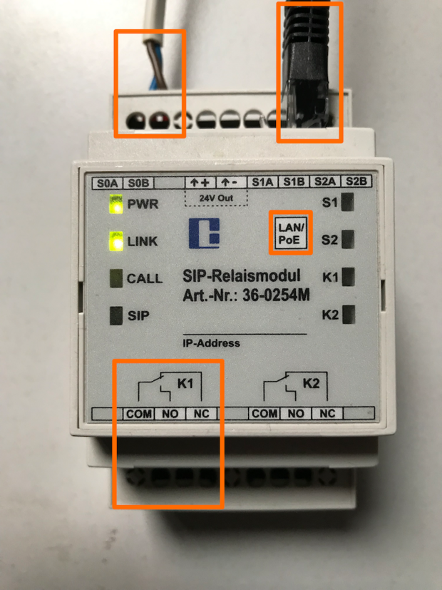 Hinweis: Bitte beachten Sie, dass das SIP-Modul nur über PoE (Power über Ethernet) mit Betriebsspannung versorgt werden kann. Es muss dafür gesorgt werden, dass ein entsprechender Anschluss an einem PoE-Switch verfügbar ist.
