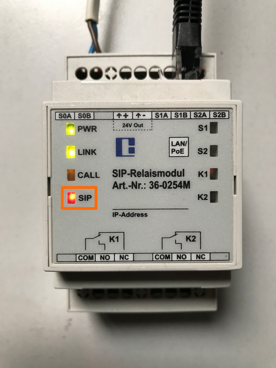 - An der LED-Ausleuchtung der roten Status-LED „SIP“ am Gerät.