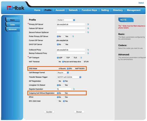 Htek IP-Telefon manuell als Endgerät in der Cloud Telefonanlage einrichten