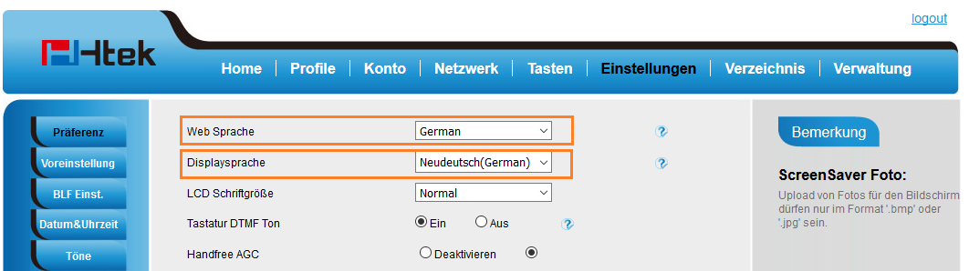 Wichtiger Hinweis: Bitte stellen Sie sicher, dass Sie die aktuelle Firmware für Ihr Gerät verwenden. Diese finden Sie auf der Website von Htek.