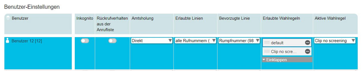 Weisen Sie den Benutzer, für die diese Wahlregel berücksichtigt werden soll, diese Wahlregel als aktive Wahlregel im Menu Benutzer/Benutzer-Verwaltung zu.