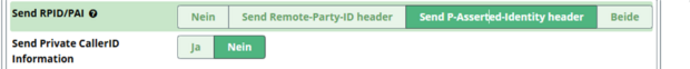 - Send RPID/PAI: „Send P-Asserted-Identity header“