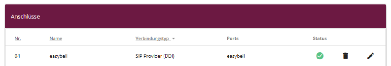 Sie sehen in der Übersicht den von Ihnen konfigurierten Anschluss.