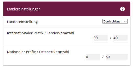 Bei Internationaler Präfix / Länderkennzahl ist standardmäßig der Eintrag mit 00/49 für Deutschland vorbelegt.