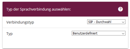 Wählen Sie den Verbindungstyp, hier z. B. SIP-Durchwahl aus.