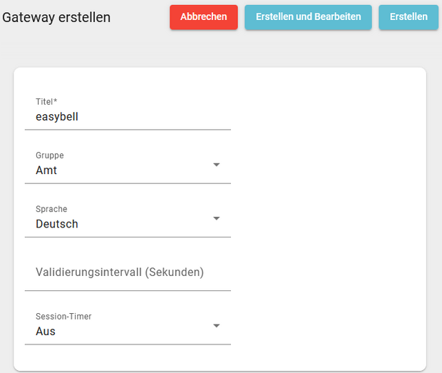Füllen Sie bitte die Daten des Gateways wie folgt aus: