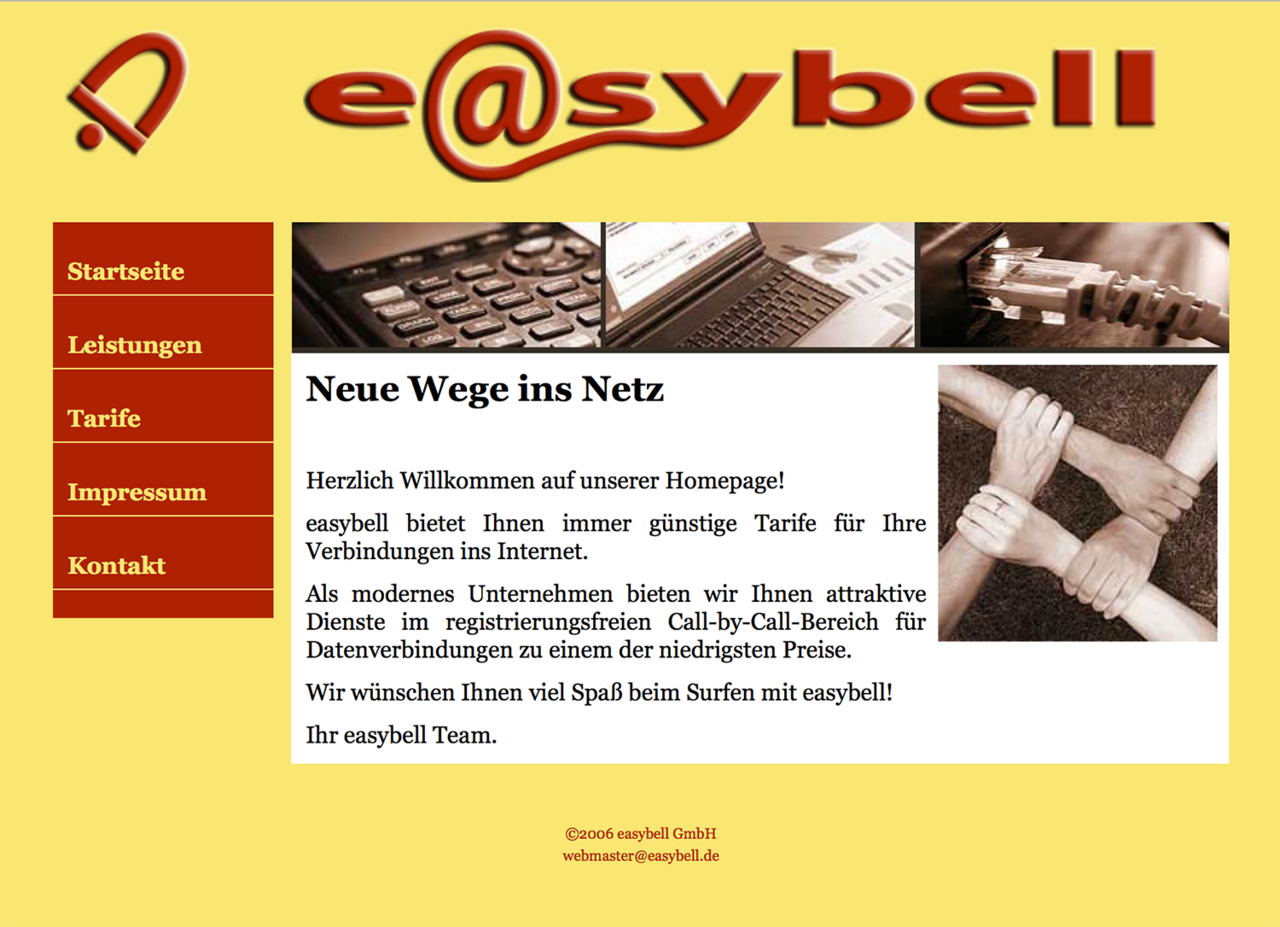 So begann alles in einem kleinen Potsdamer Büro. Hier arbeiteten zunächst nur sechs Kollegen. Der Auftrag war klar: „Günstige Tarife für Ihre Verbindung ins Internet“ – und so ging easybell schließlich mit dieser Webpräsenz erstmals an den Start:
