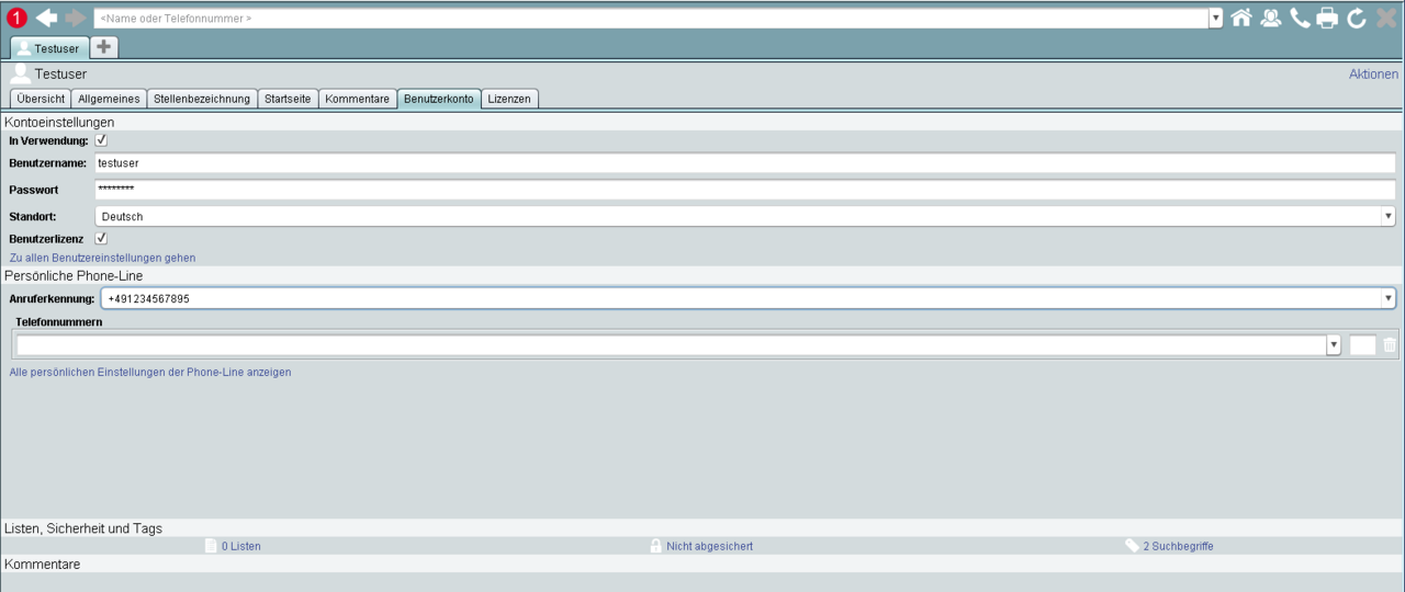 Nach dem Anlegen des Benutzers wechseln Sie automatisch in den Tab „Benutzerkonto“ der Benutzereinstellungen.