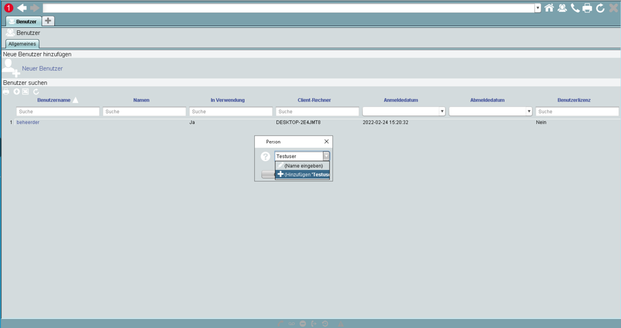 Klicken sie auf „Neuer Benutzer“ und tragen Sie in dem auftauchenden Fenster den Namen des neuen Benutzers ein. Im Anschluss klicken Sie auf „+ Hinzufügen“.