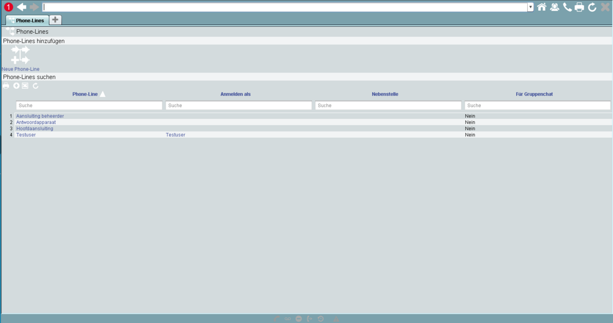 Als nächsten Schritt gehen Sie aus dem Administrationsmenü auf den Punkt „Phone-Lines“. Dort können Sie die angelegten Benutzer bearbeiten.