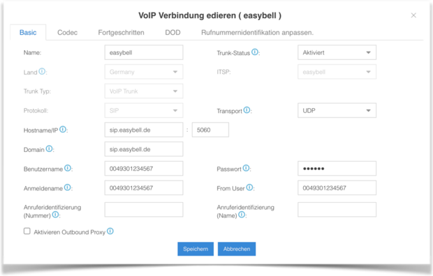 Sie können nun über den easybell SIP Trunk ausgehende Anrufe tätigen.