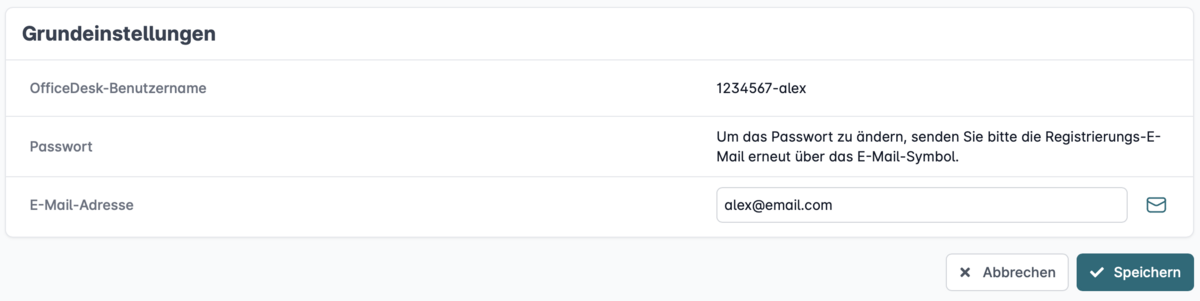 In den Grundeinstellungen Ihres OfficeDesks können Sie das Passwort einfach ändern, indem Sie in das Feld "Passwort" klicken, das gewünschte Passwort hinterlegen und im Feld darunter wiederholen.