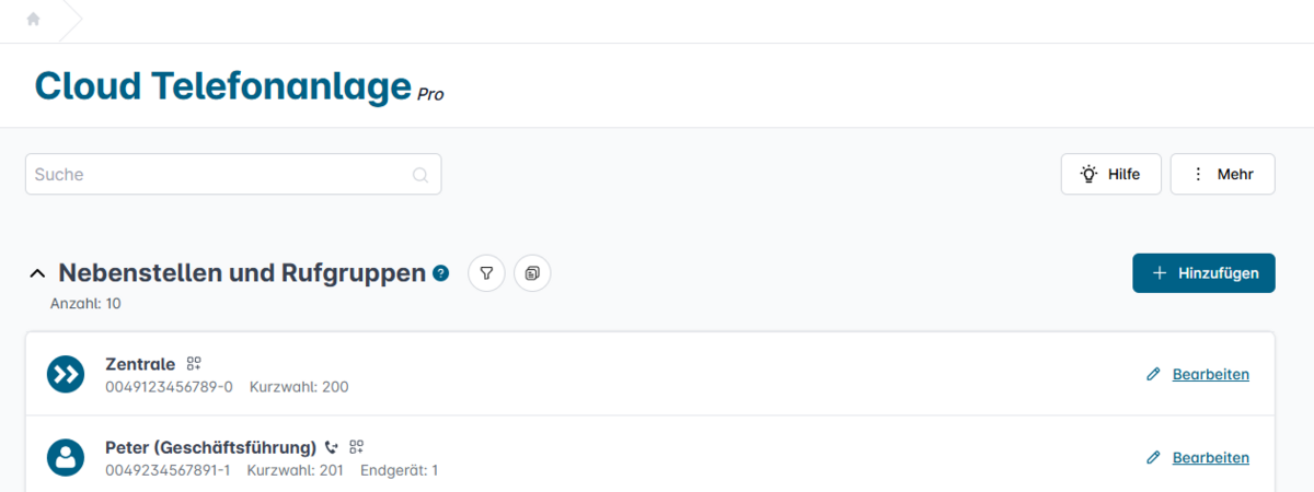 Legen Sie bitte in der easybell Cloud Telefonanlage die benötigten Nebenstellen an. Hierzu folgen Sie bitte der hier verlinkten Anleitung.