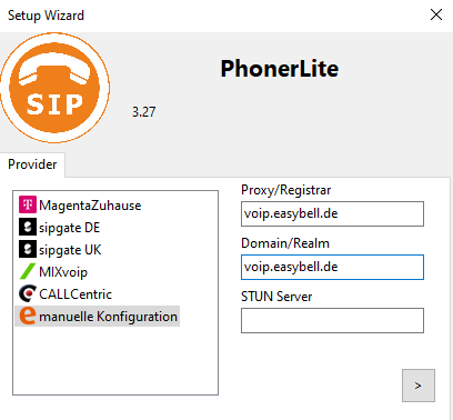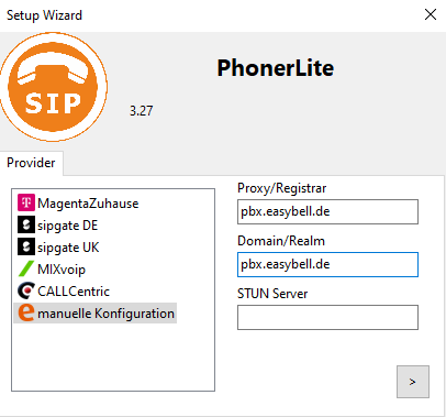 2. Proxy/Registrar und Realm/Domain ausfüllen