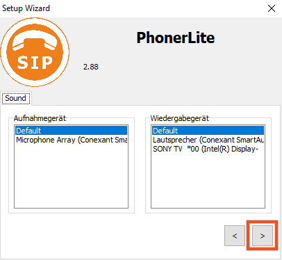 Im nächsten Schritt können Sie die Aufnahme- und Wiedergabegerät auswählen, welche Sie für PhonerLite nutzen möchten.