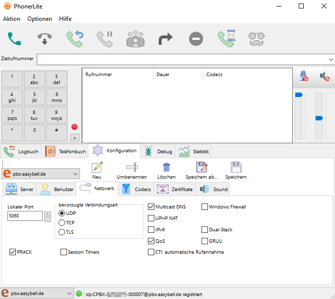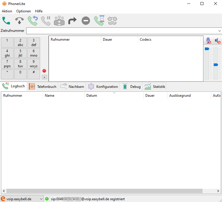Sie sollten sich nun erfolgreich registriert haben. Erkennen können Sie das am Status unten im PhonerLite-Fenster.