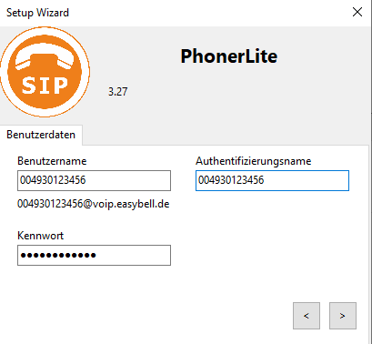 Benutzer- & Authentifizierungsname: SIP-Benutzername