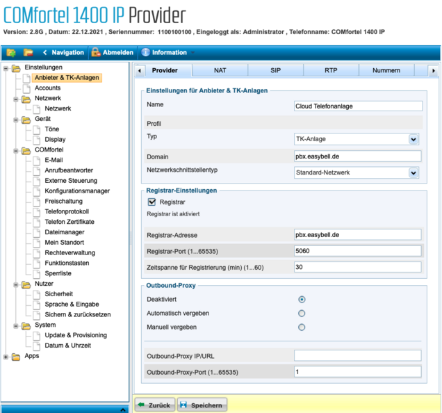 Auerswald COMfortel 1400 IP für Rufnummern oder Cloud Telefonanlage einrichten